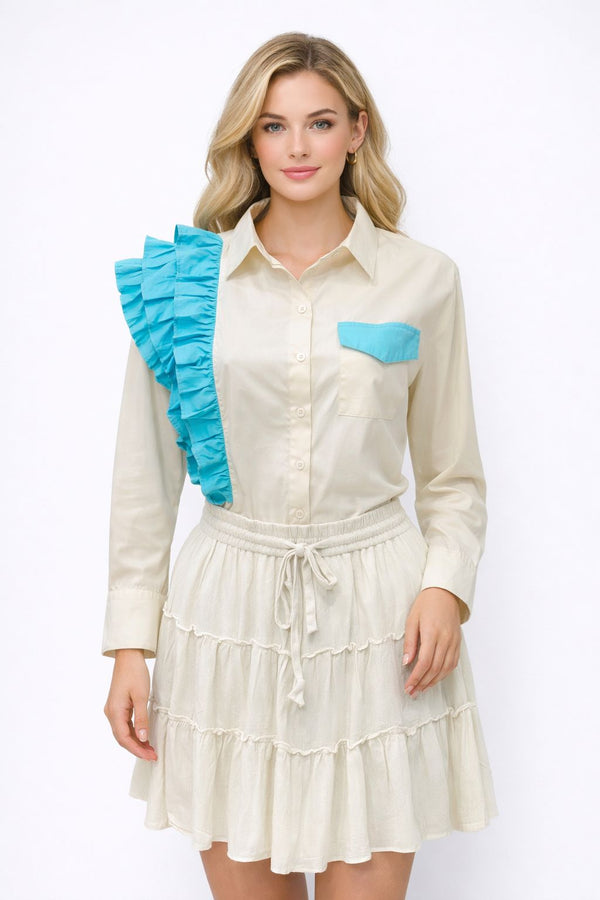 Black Ribbed Gold-Button Elegant Long Sleeve Top